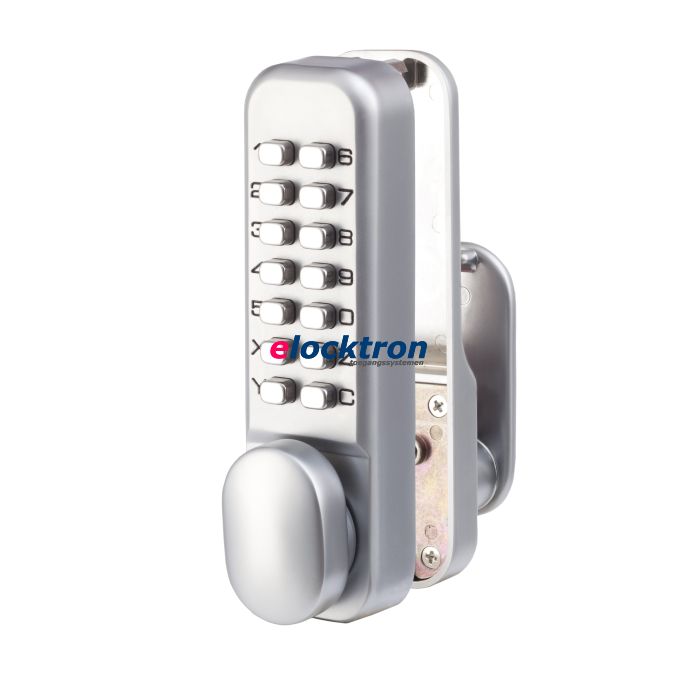 Deze stijlvolle mechanische codesloten zijn eenvoudig op de deur te plaatsen en worden geleverd inclusief dagschoot met dagschootblokkering of opbouw nachtschoot en sluitkom. Door het intoetsen van de juiste code is de knop te bedienen en kan de deur worden geopend. Na het openen van de deur vergrendelt deze, bij de dagschootuitvoering, na het sluiten automatisch. Bij de nachtschootschootuitvoering moet deze, na het sluiten van de deur, handmatig op slot worden gedraaid. Vanuit de binnenzijde is de deur altijd via de kruk mechanisch te openen.
